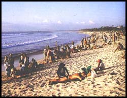 Sanur and its adjoining reefs are best surfed during the wet season (November to April), because west winds here blow offshore, while dry month trades blow dead onshore.